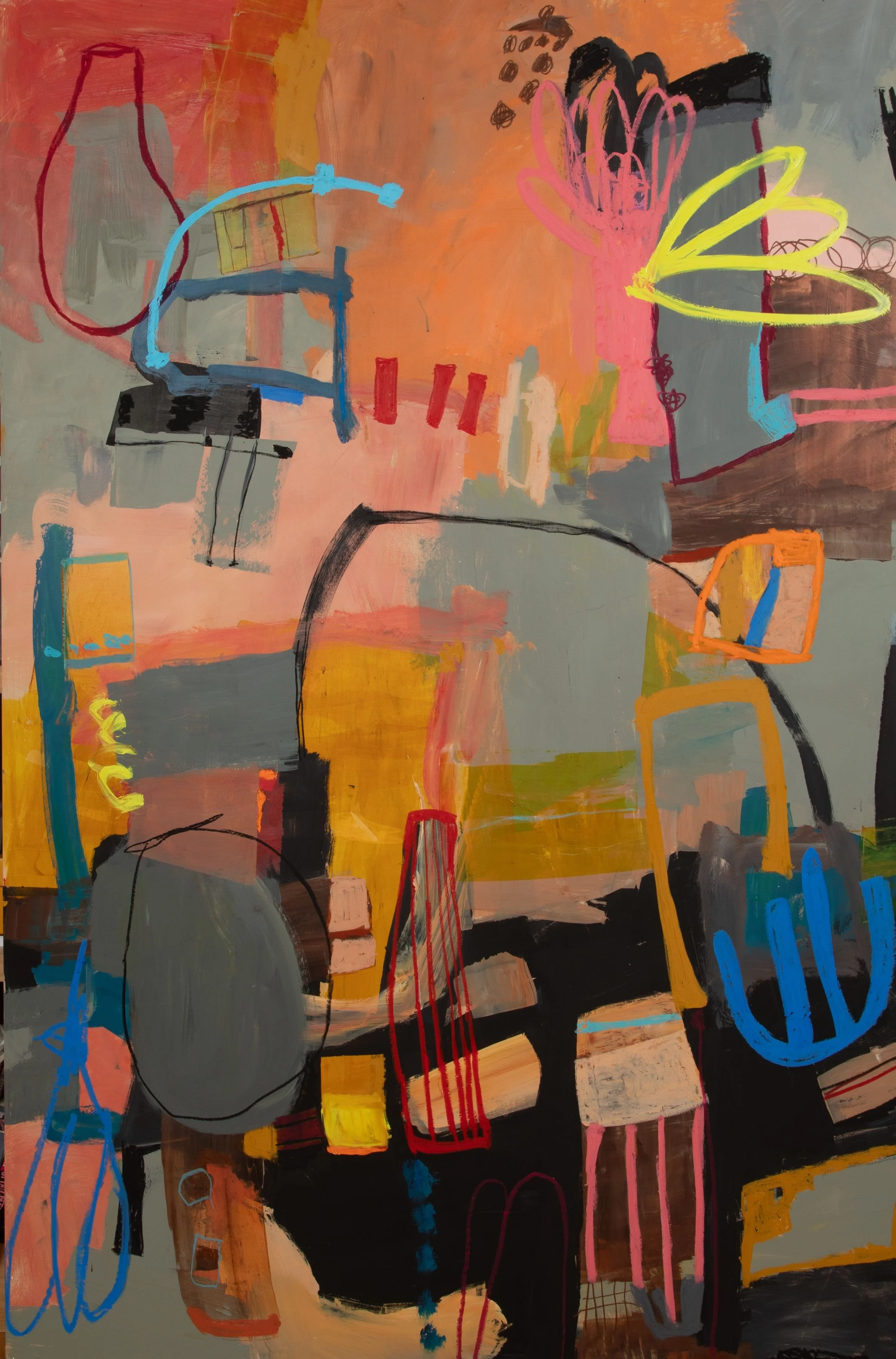 Encaustic, oil, acrylic, and collage paintings on wood panel.
